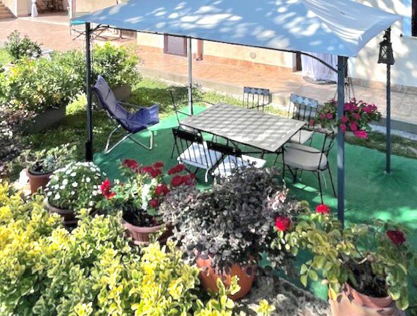 Nella zona esterna riservata al bilocale, troverete oltre al gazebo con tavolo per sei persone, alcune sdraio per godere dei vostri momenti di relax.