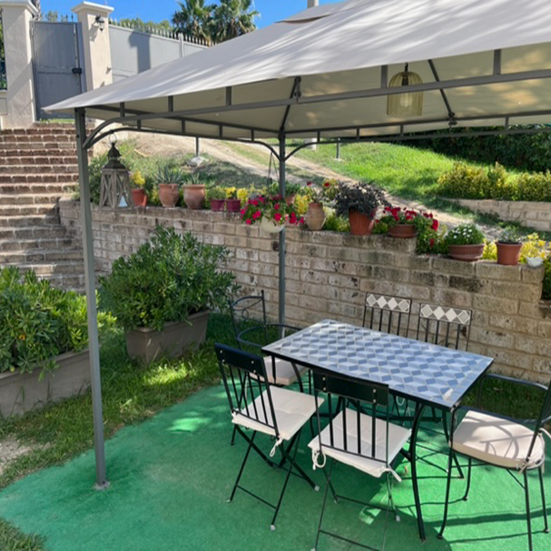 Al risveglio o per i vostri aperitivi, l’esterno della “Taverna” è arredato con un salottino privato e ombrellone mobile per godere della parte più soleggiata del giardino.